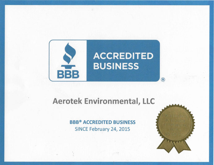 Aerotek Environmental LLC operates with a strict commitment to professional ethics, transparency, and client protection. The company is accredited and A+ rated by the Better Business Bureau, reflecting a long-standing record of ethical business practices, honest communication, and accountable service. This commitment ensures clients can trust not only the technical work performed, but also the integrity of every recommendation and report.