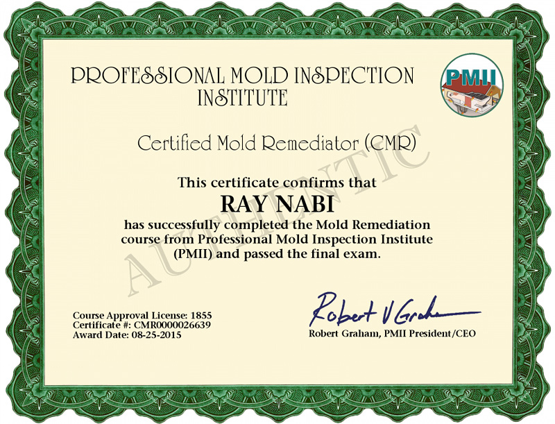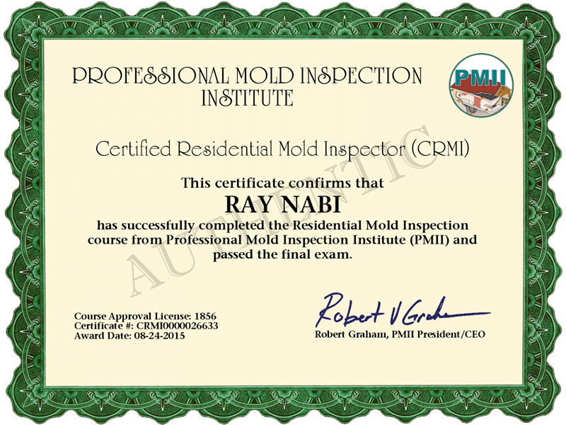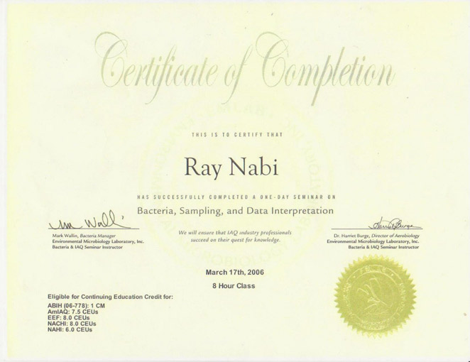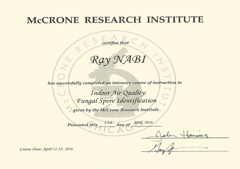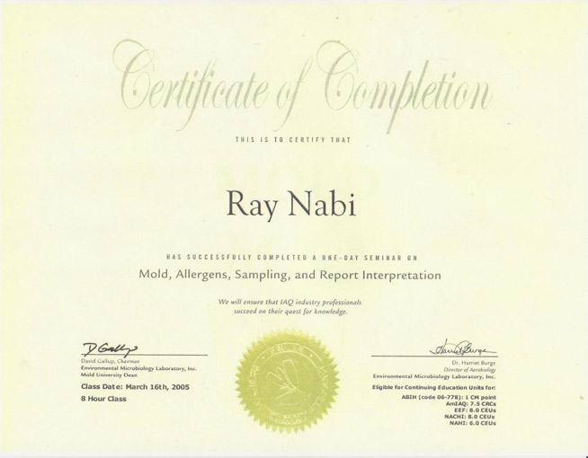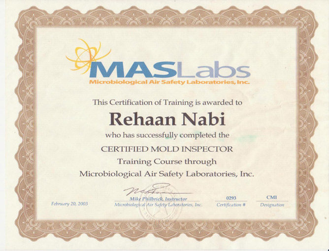 We have many mold testing, mold remediation and related credentials and certifications.